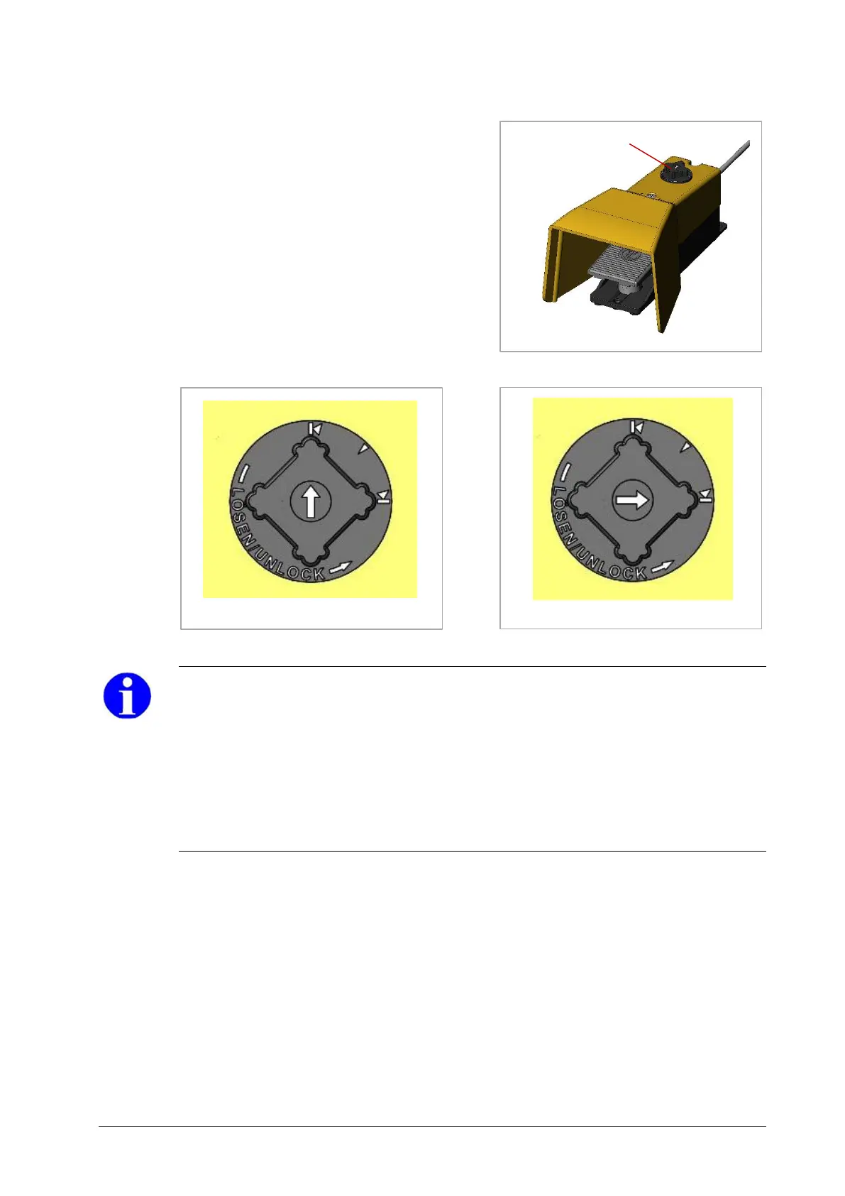 + Bei voll durchgetretenem Fußschalter verriegelt die Sicherheitssperre. Der Pfeil des