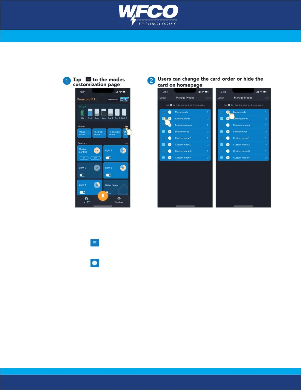 b) Tap to hide the card on ‘My RV’ page.