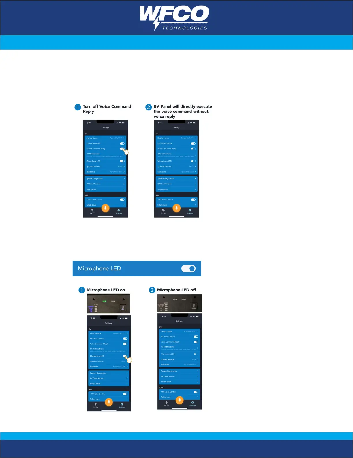 Users can turn off the RV voice command reply, and RV panel will directly execute
