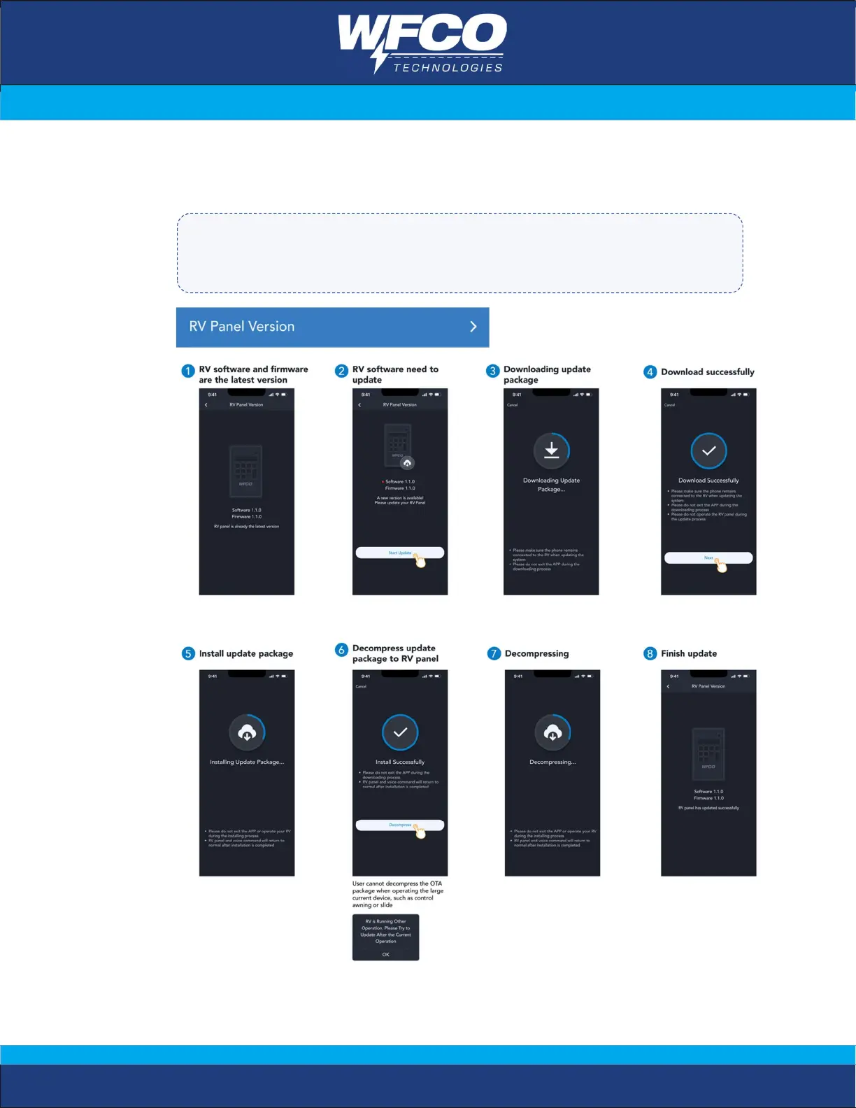Users can update the RV Panel (including firmware and software) on ‘Settings - >