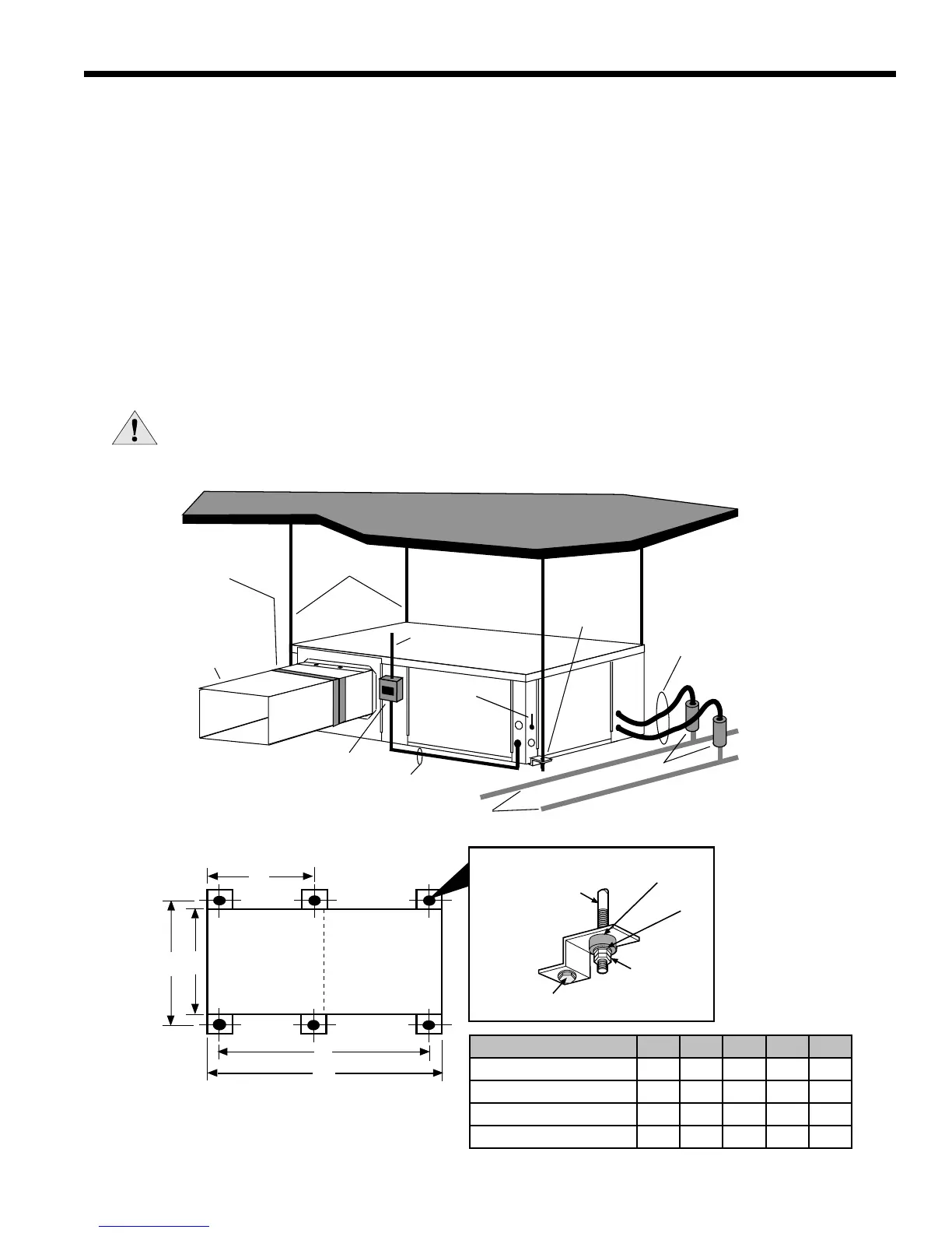 a ceiling by four or six 3/8-inch diameter threaded rods. The rods are usually attached to the unit by hanger bracket kits