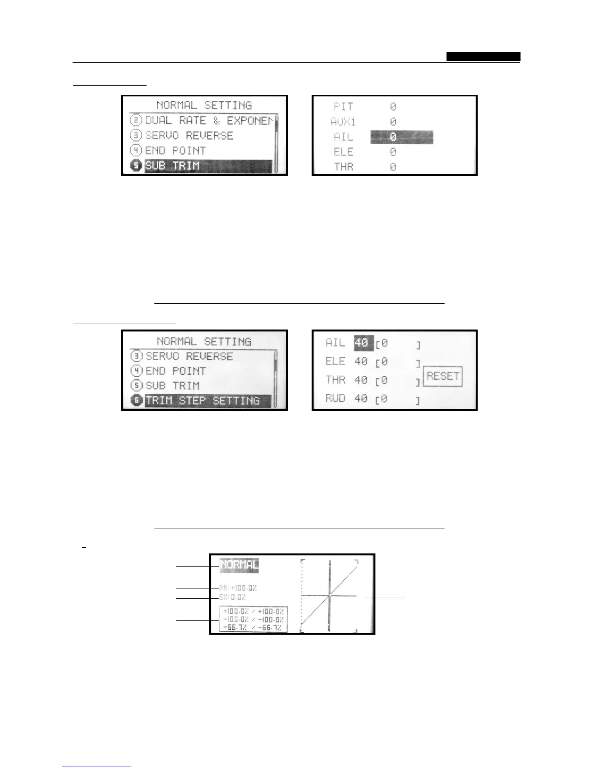 to select the "Sub trim", press the OK key to the + / - keys or used the OK key to implement, long