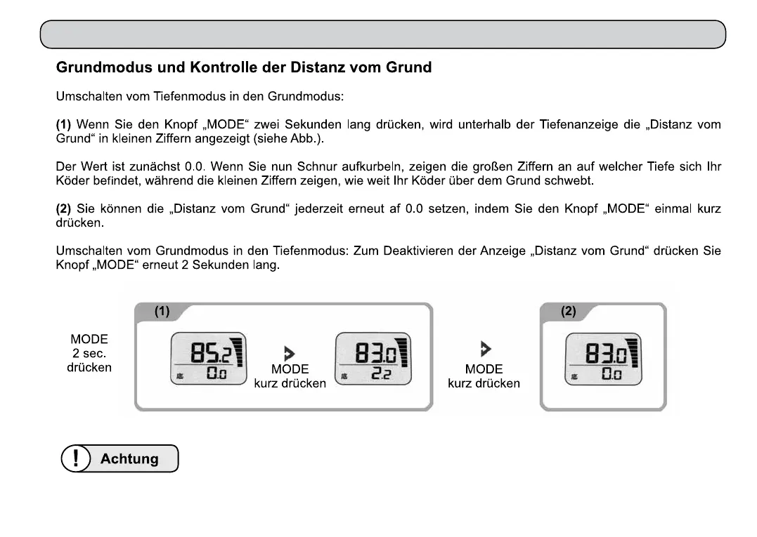 - das Display kann die „Distanz vom Grund“ nicht anzeigen,