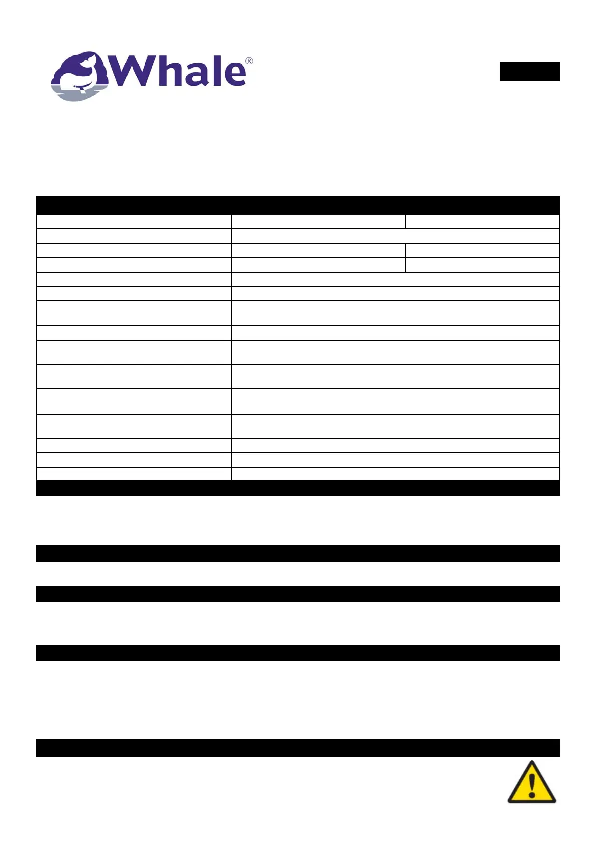 Die Whale-Abwaschausrüstung ist für eine Montage in Freizeit-Wasserfahrzeugen und ausschließlich zum Gebrauch