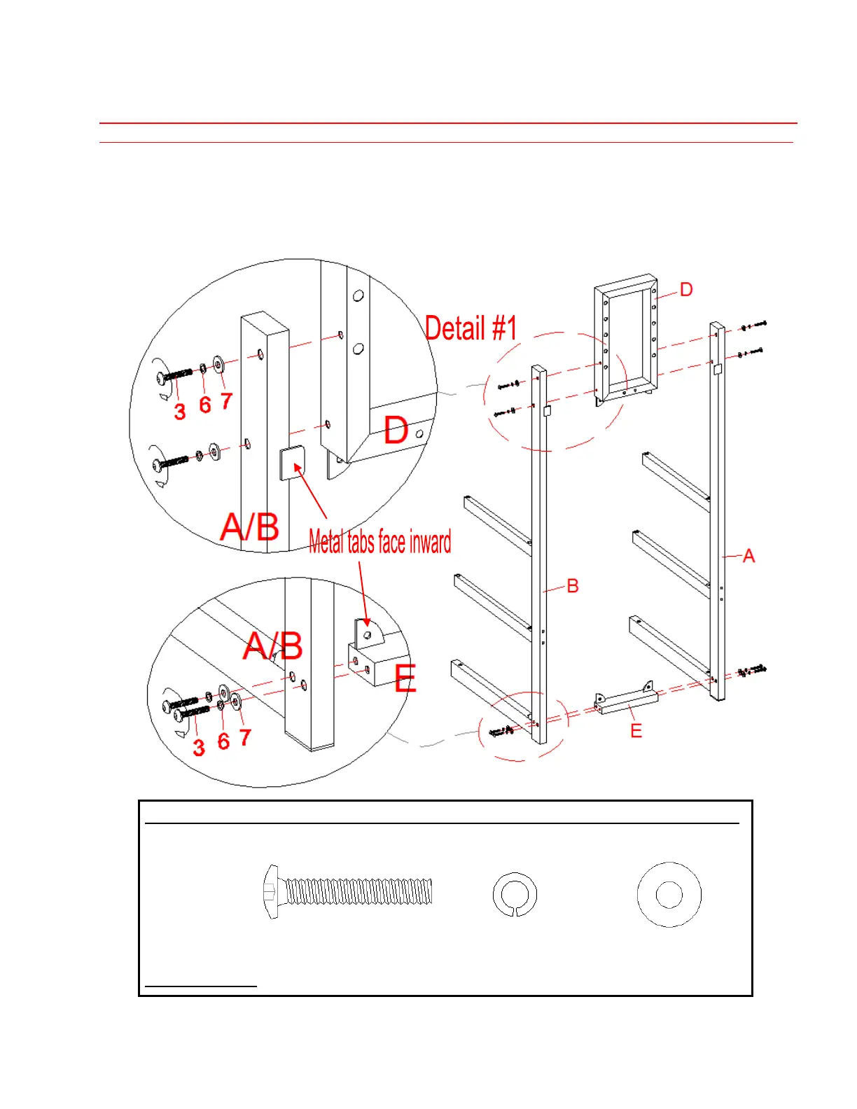 Frame (A & B) by inserting the 1-1/2” Bolts (3) with Lock Washers and Flat Washers (6 & 7)