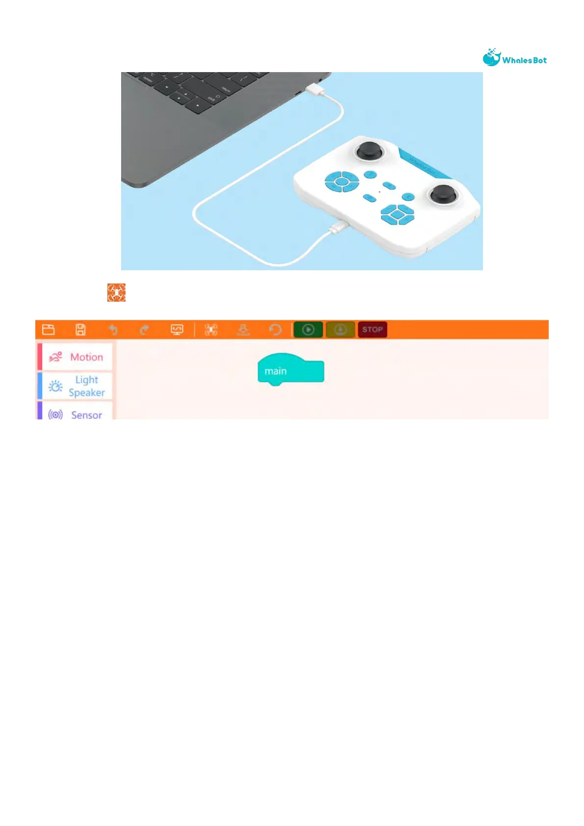 1. Edit the program for the drone. You can drag the required code blocks to the canvas and put
