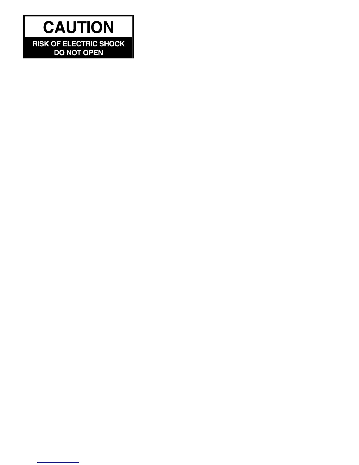 WARNING: To reduce the risk of electric shock, do not remove cover (or back). No user servicing - qualified service person-