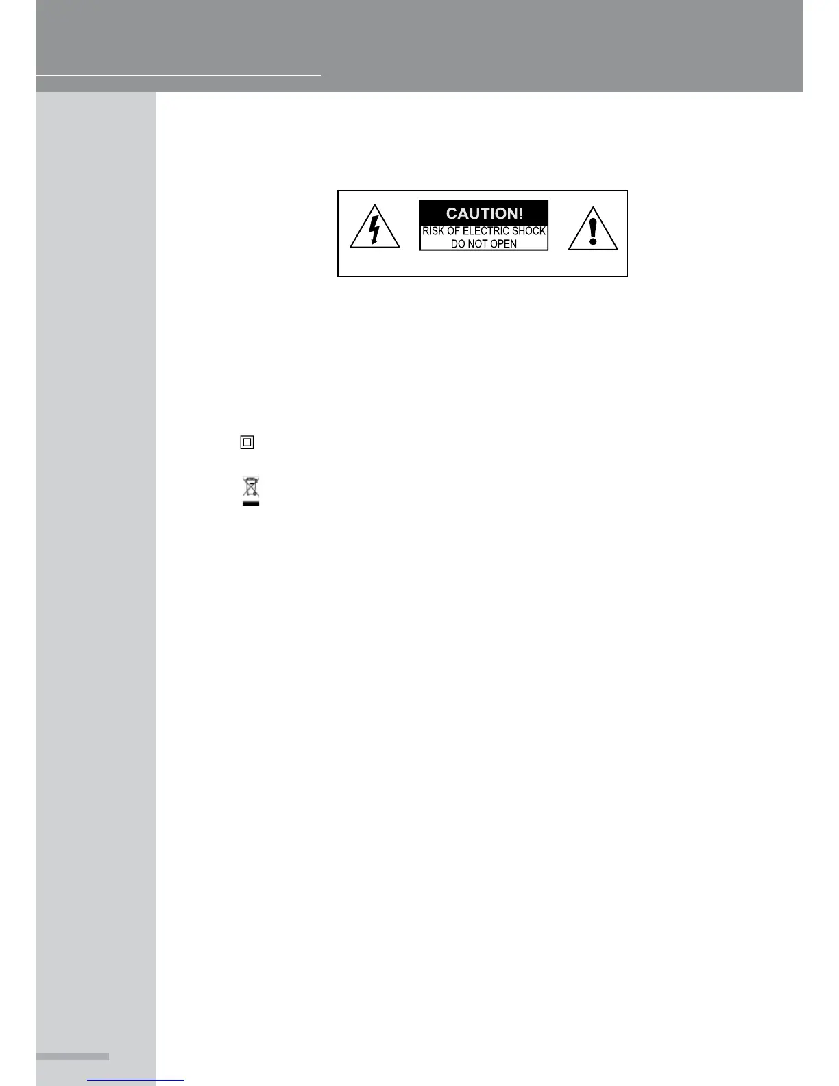 Warning: To reduce the risk of electric shock, do not remove the cover (or back) as there are no