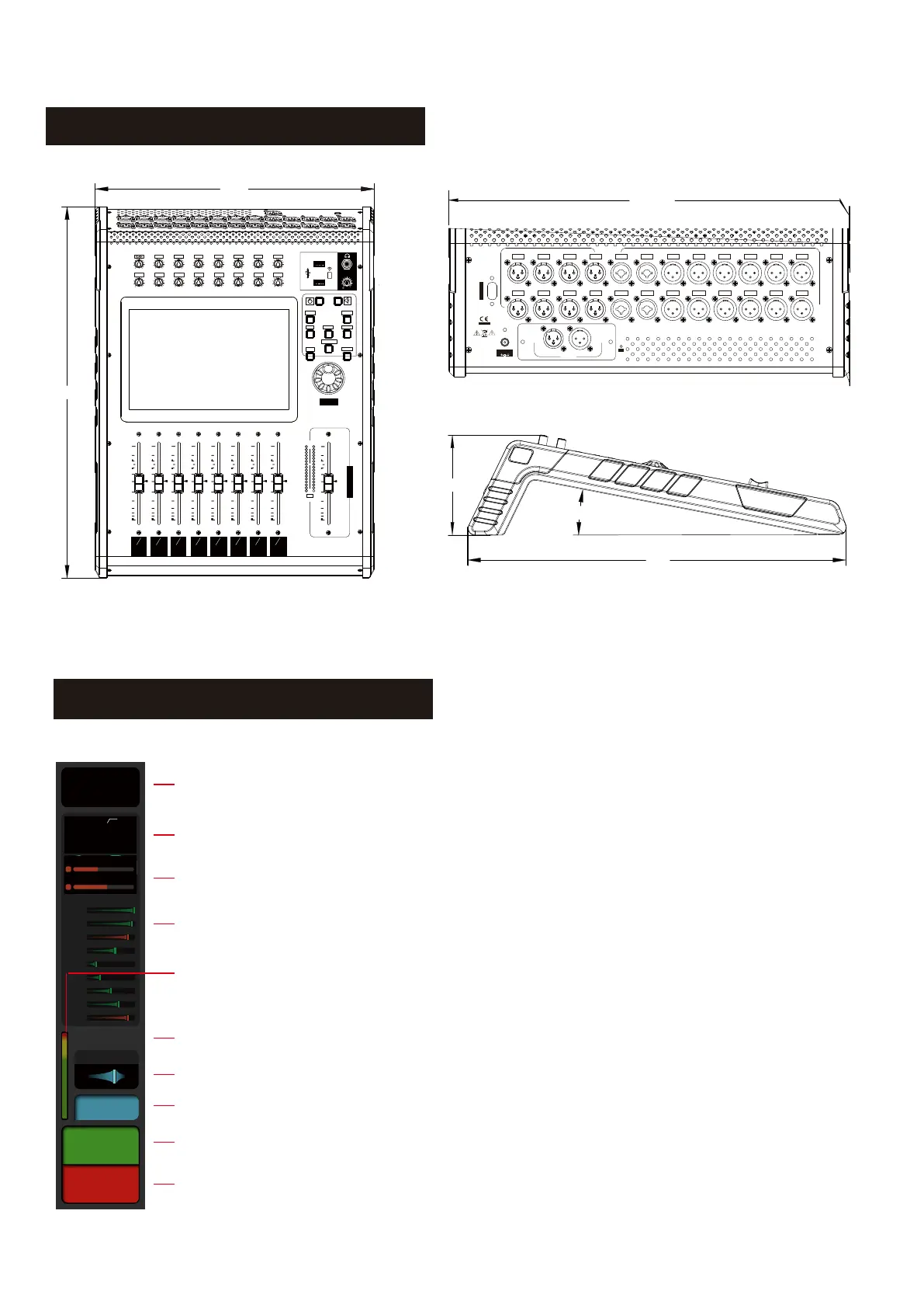 1. Mic input section: displays the current channels' Link, gain value, phantom power, phase, delay and