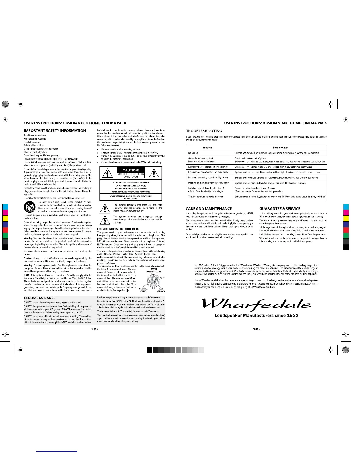 Wharfedale Pro OBSIDIAN 600 - Important Safety Information; Safety Instructions; Electrical Safety Warnings; Troubleshooting