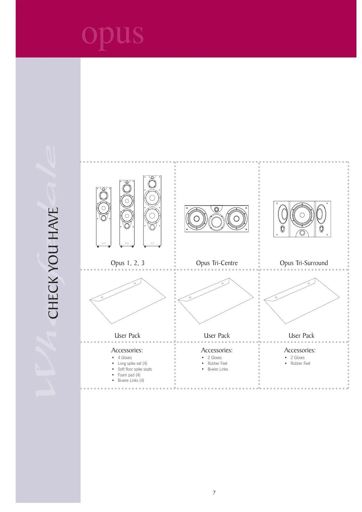Opus 1, 2, 3 Opus Tri-Centre Opus Tri-Surround
