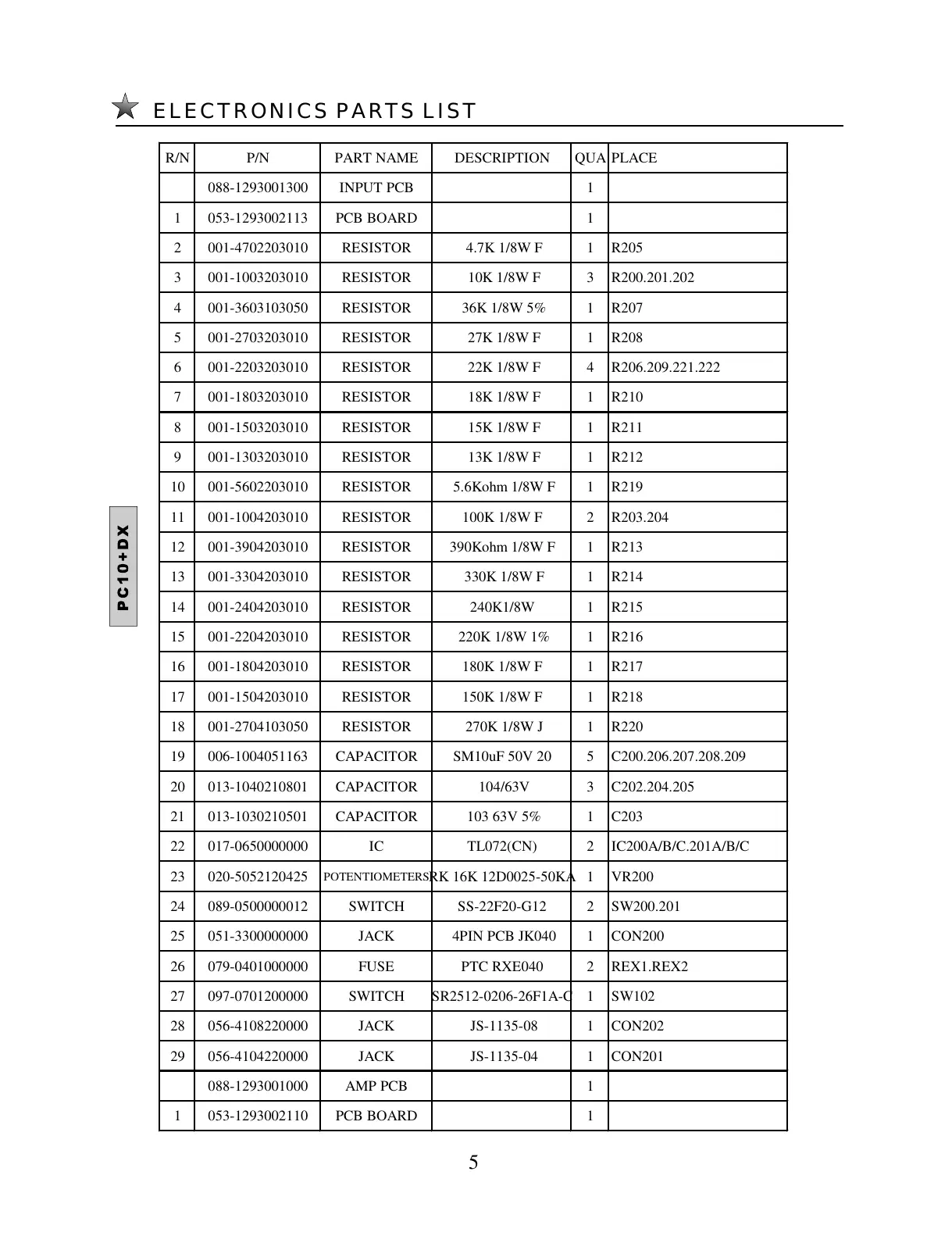 R/N P/N PART NAME DESCRIPTION QUA PLACE