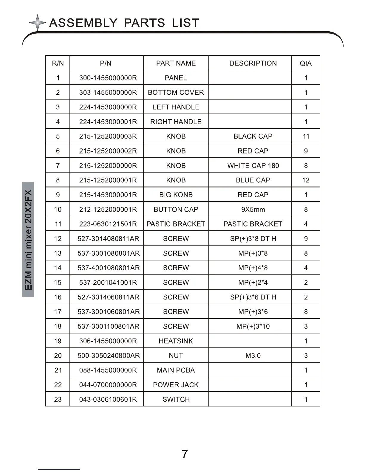 Wharfedale Pro Pro 20X2FX - Assembly Parts List