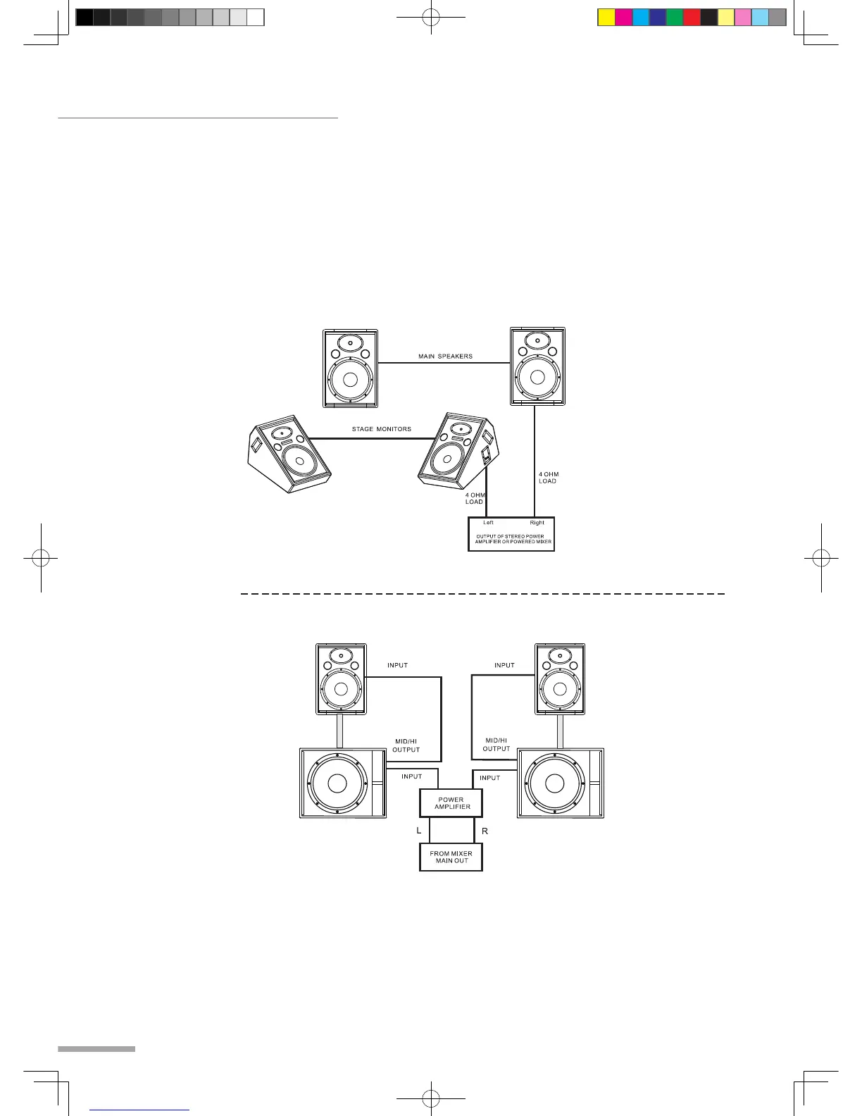 connecting multiple v series speakers together in a mono-main and stage monitor conguration using a single,