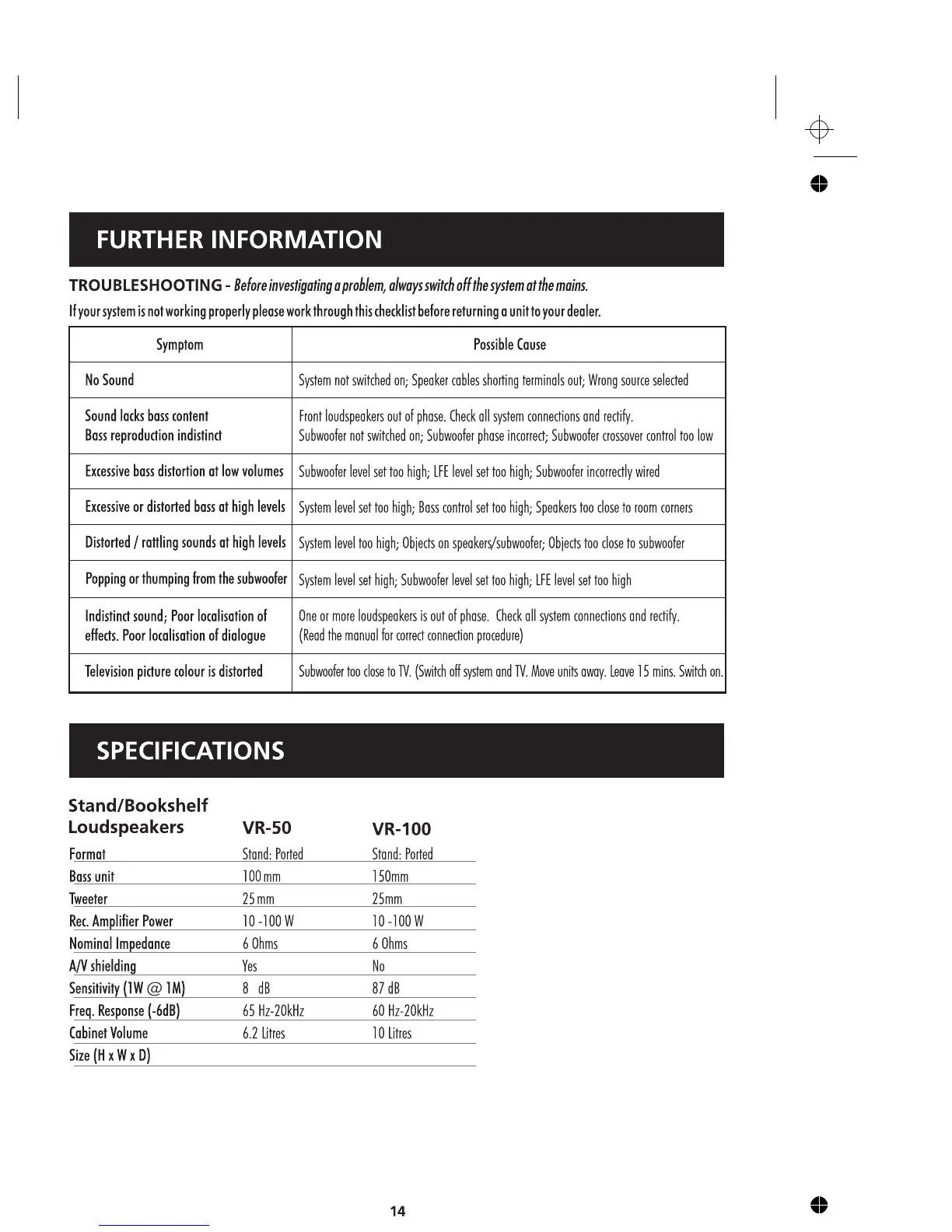 Wharfedale Pro Vardus - FURTHER INFORMATION; Troubleshooting Common Issues; Stand;Bookshelf Speaker Specifications