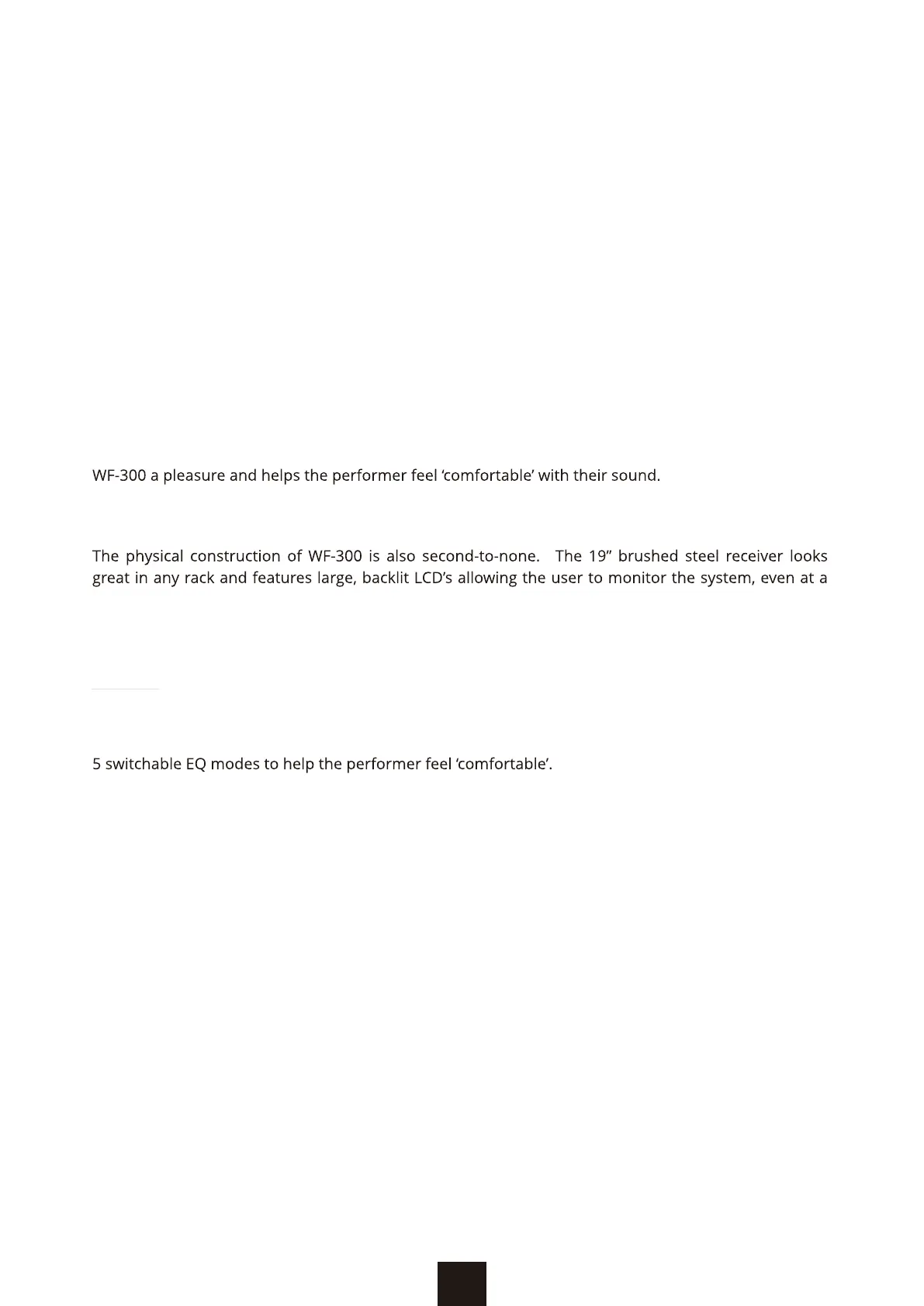The WF-300 Wireless Microphone system brings together advanced digital signal transmission