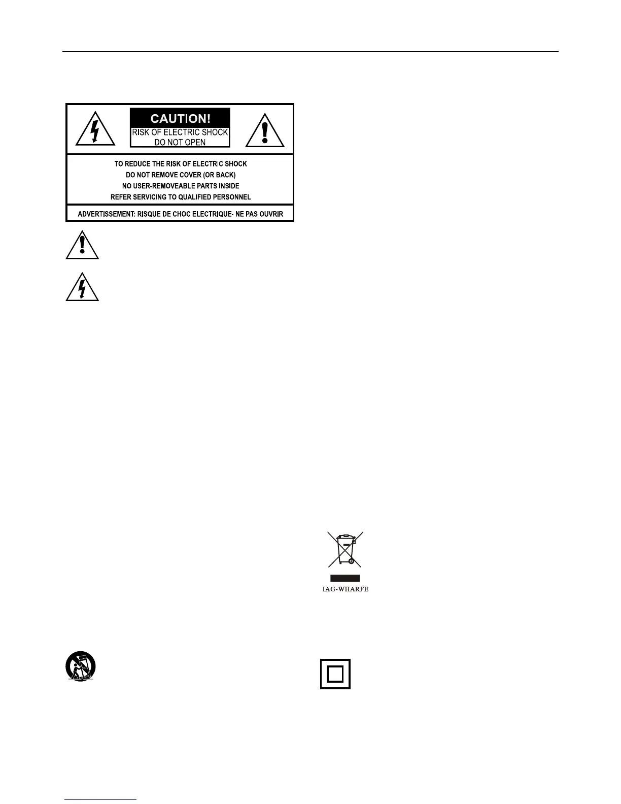 WARNING: TO REDUCE THE RISK OF FIRE OF ELECTIC SHOCK,
