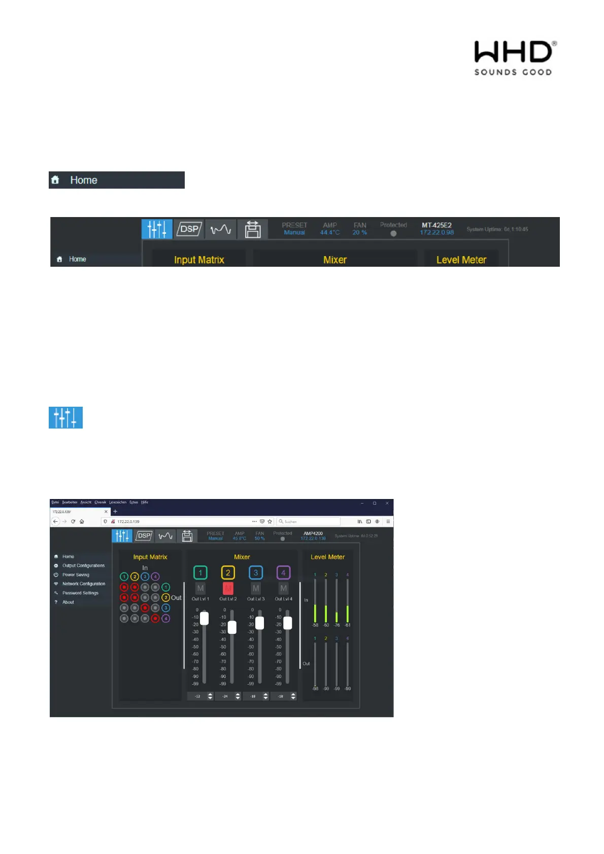 Input signals can be mixed and assigned to specific outputs via the input matrix.