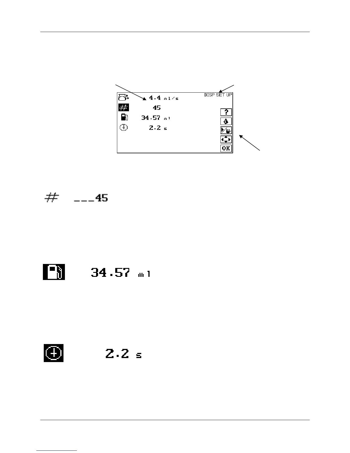 Use the UP and DOWN keys to navigate to the Volume per Dispense icon: