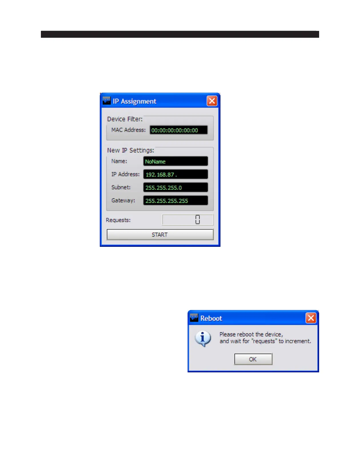 to do this). Watch the Requests entry near the bottom of the IP Assignment dialog. You