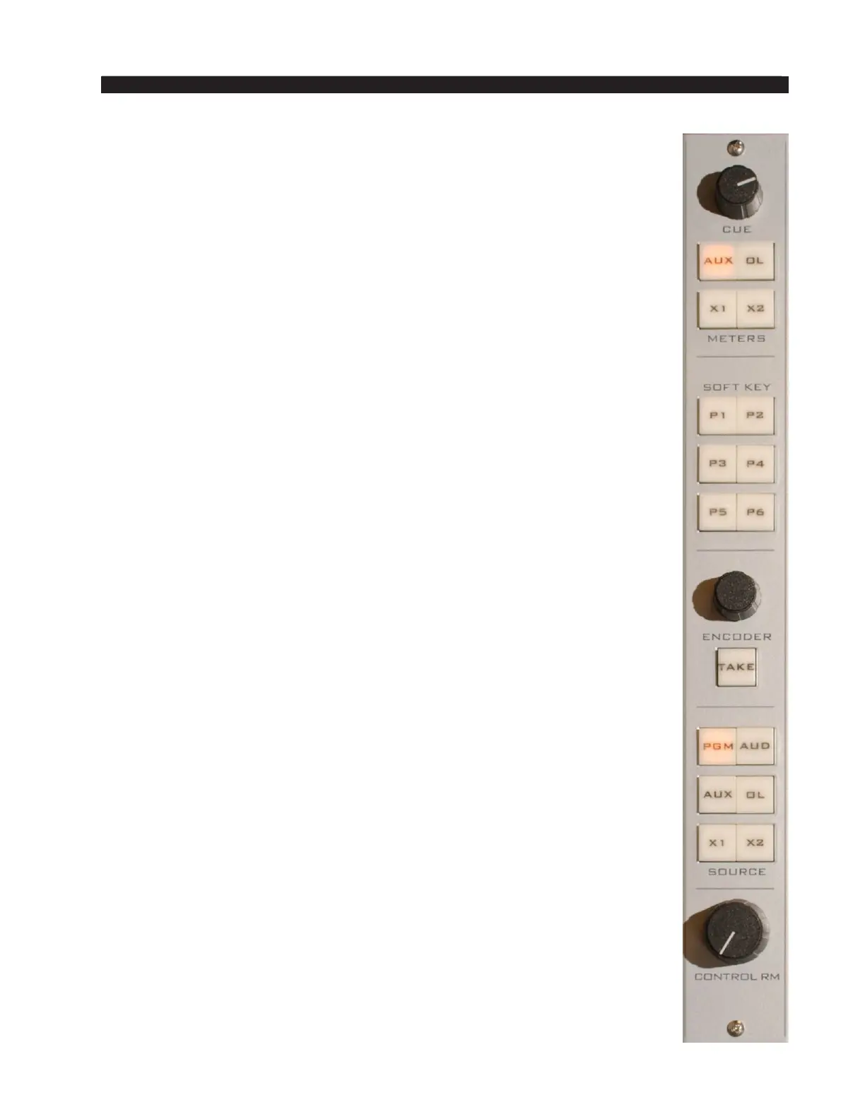controls, along with four source select (PGM, AUD, AUX and OL) buttons, as