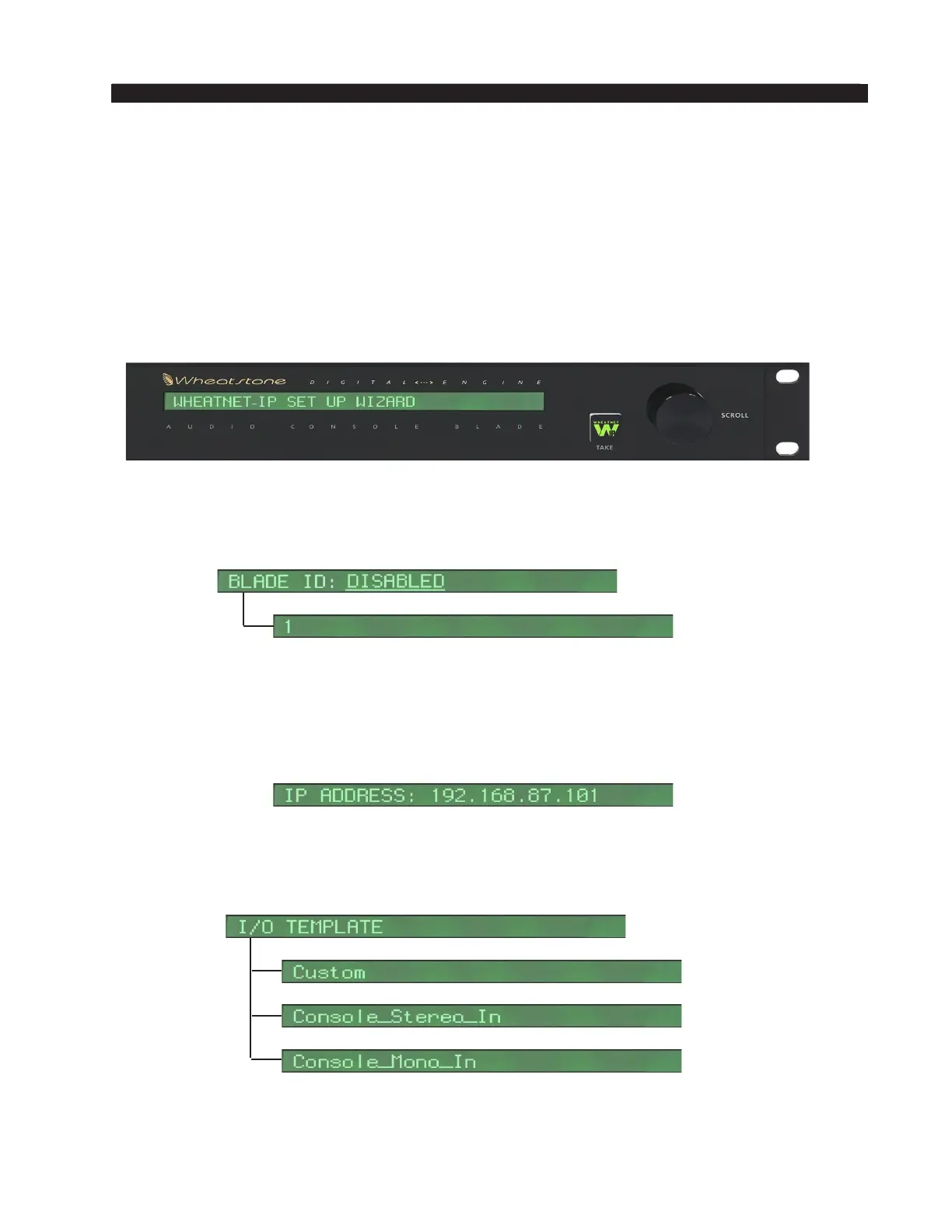 Finally the display will show I/O TEMPLATE. For Wheatstone‑IP 88cb there are three