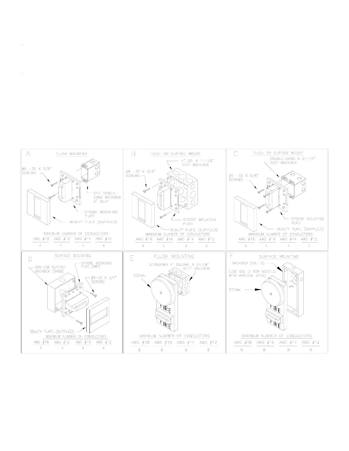 the largest backbox option shown and the use of approved stranded field wires, whenever possible, to provide additional wiring room