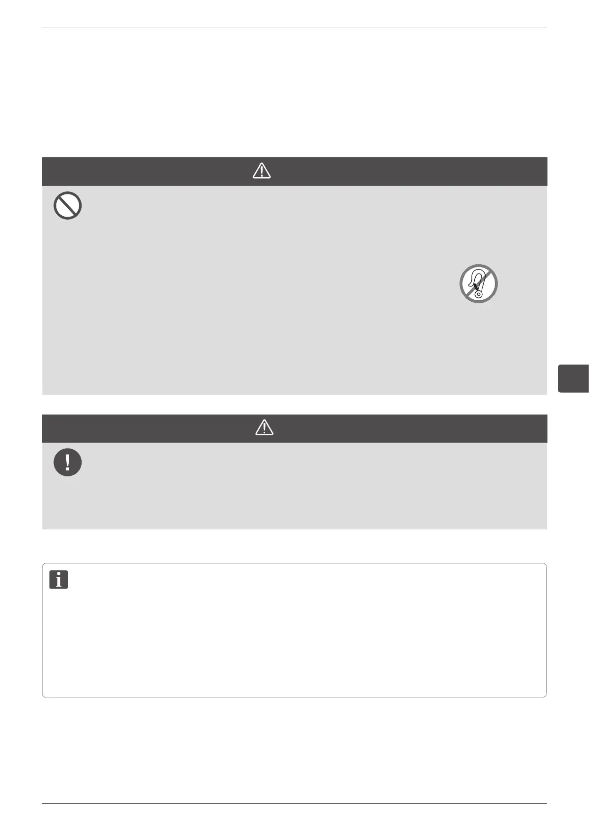 • When carrying the device by hand, grab the designated handles and do not hold it by any other part.