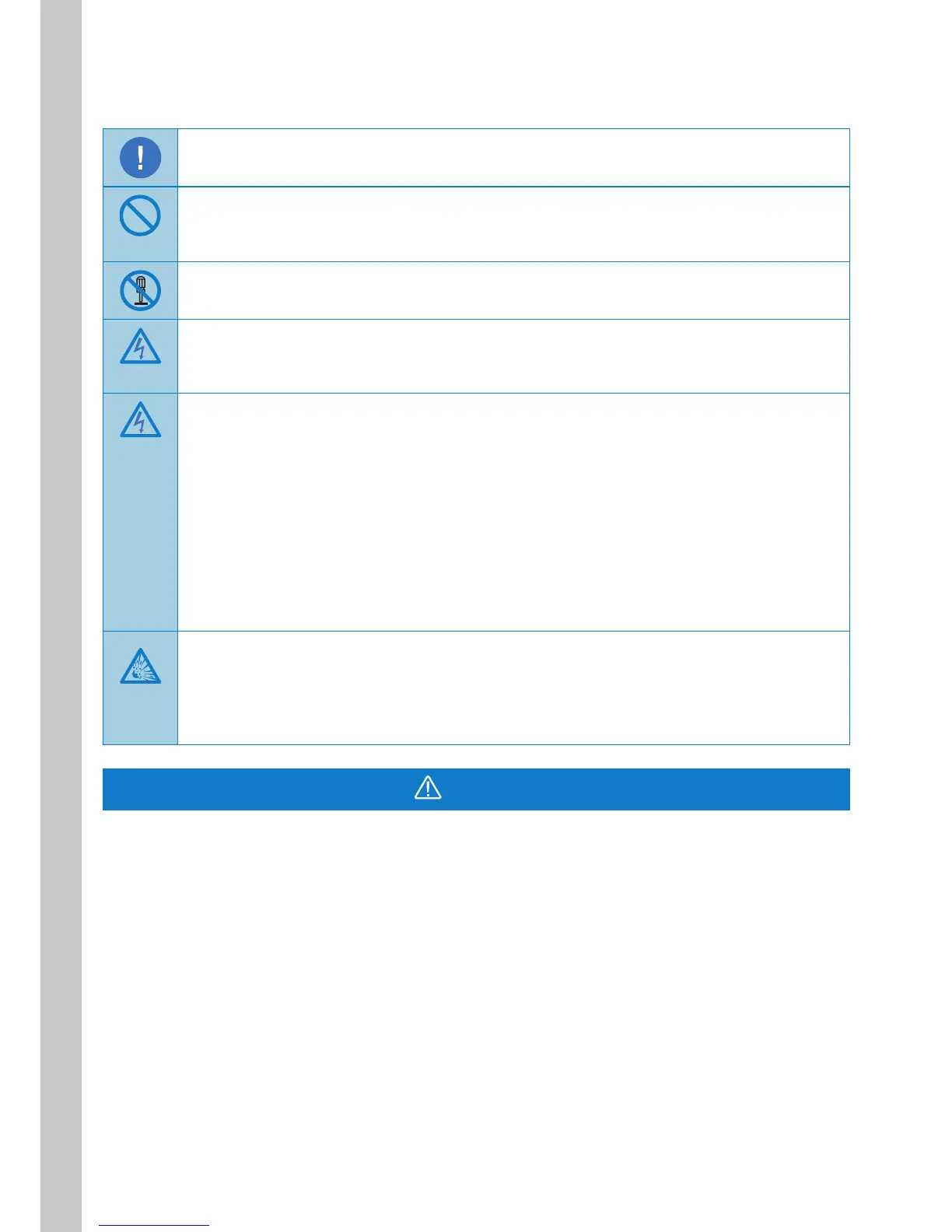 There is a risk of electric shock, short circuit, and fire. Charge using a 100 - 240 V, 50 - 60 Hz