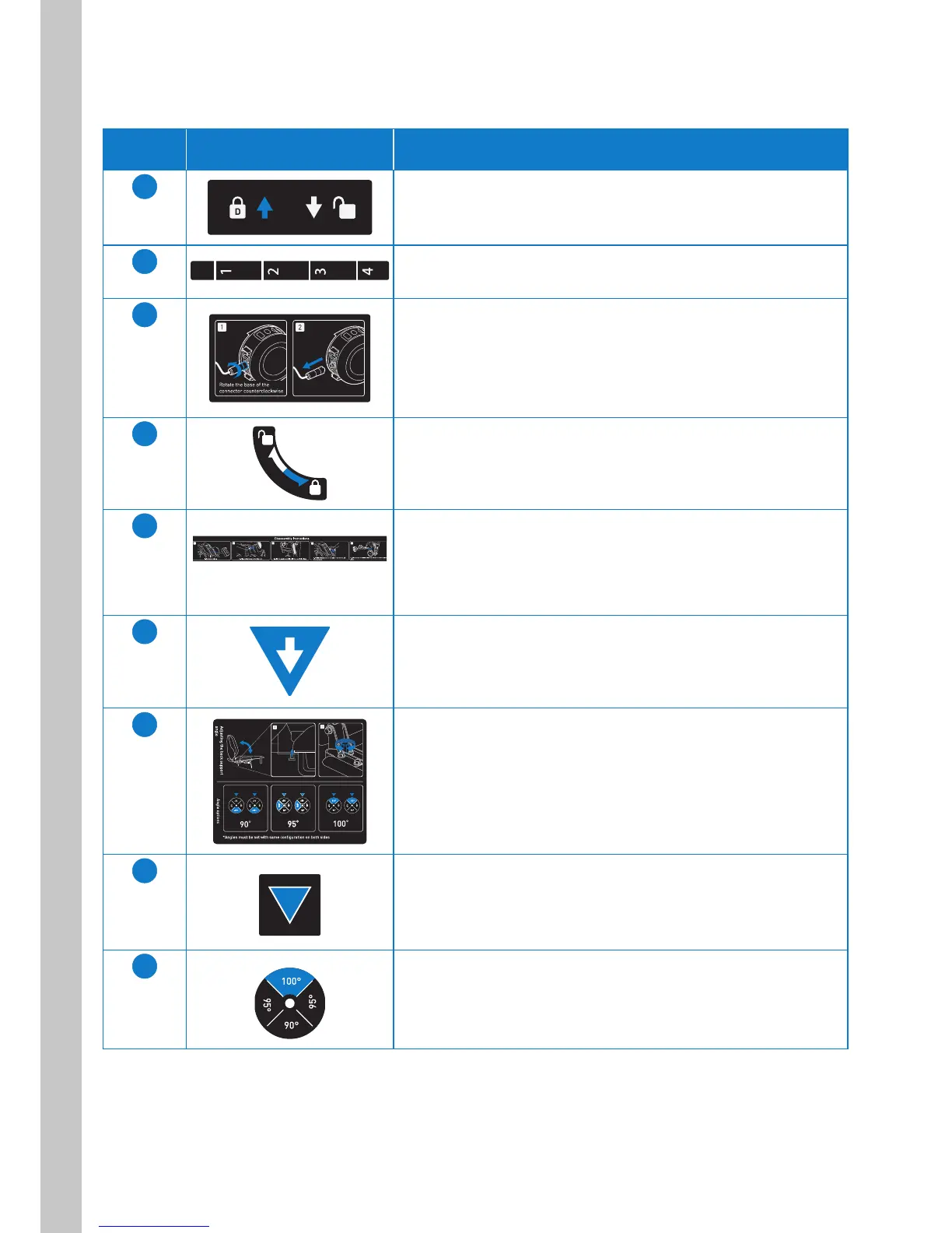Indicates the back support angle adjustment positions (90°, 95°,