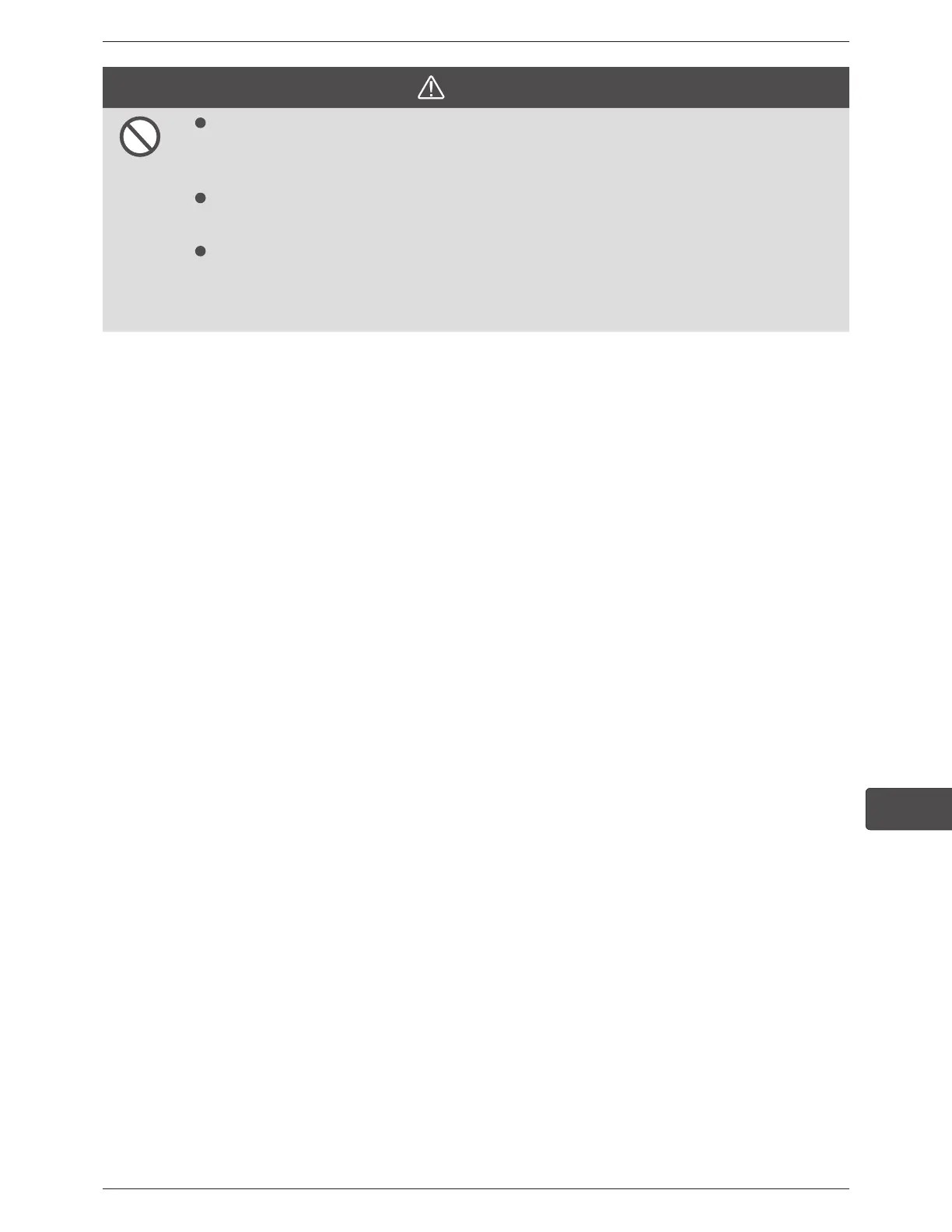 Doing so may result in discoloration, deformation, deterioration, and damage.