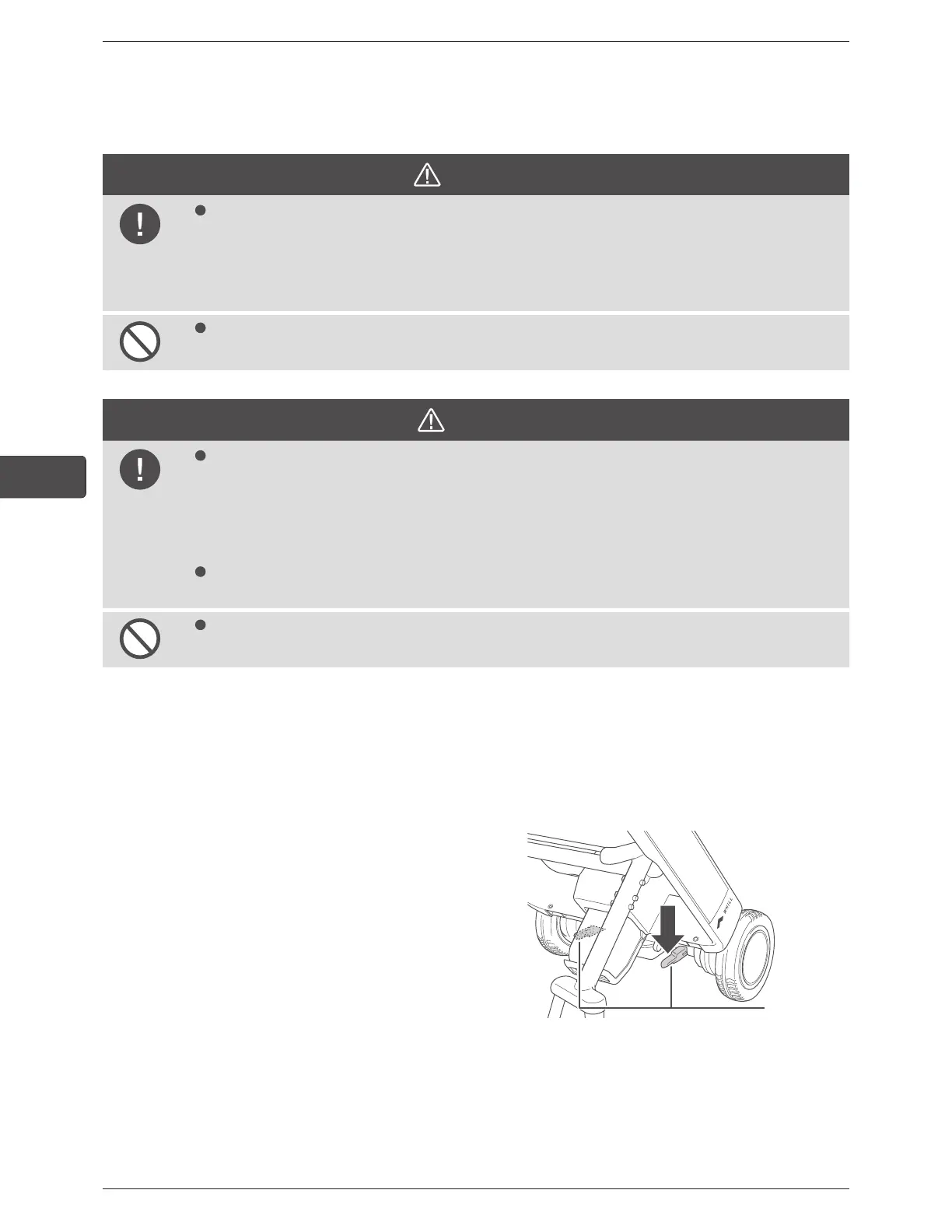 Do not operate the brake release levers with your feet.