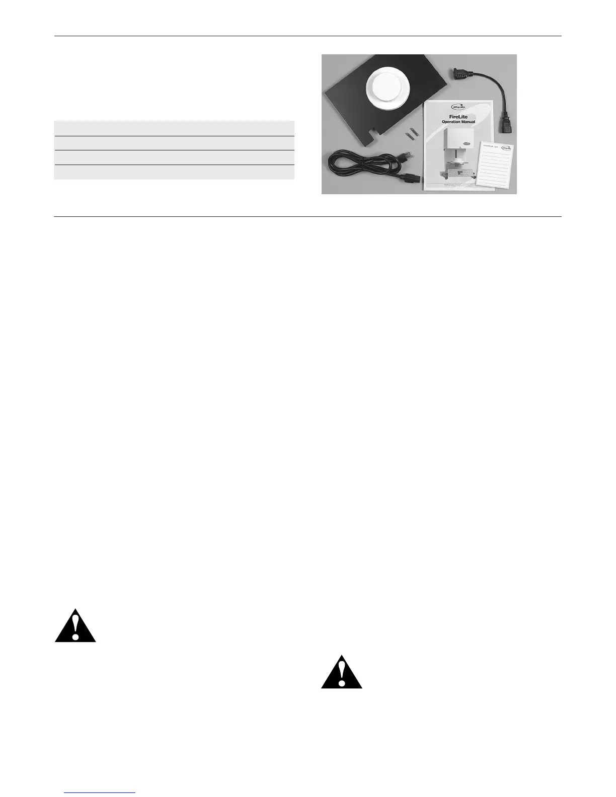 The following accessories will be found with your FireLite