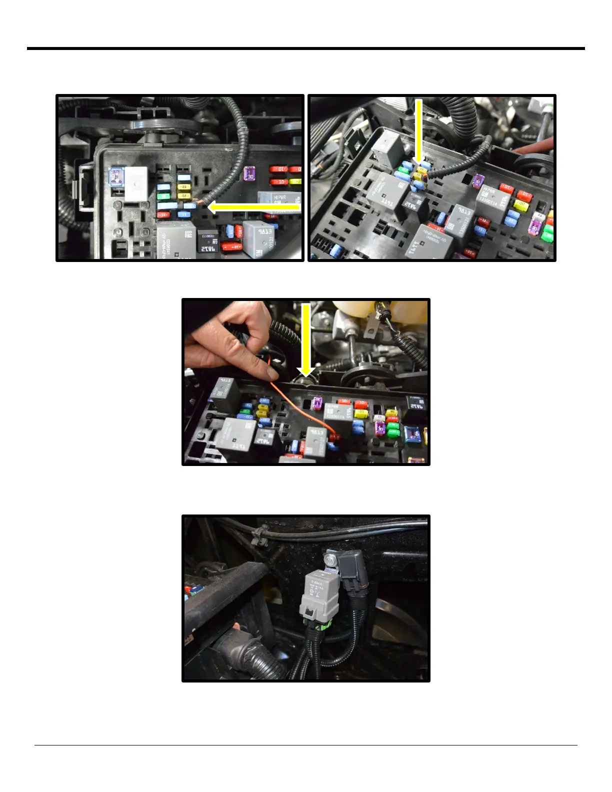 105. Install the intercooler relay and fuse holder to the factory driver side fender using the supplied 6mm x 20mm