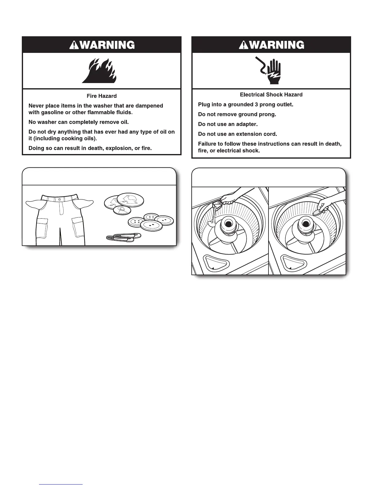 • Do not dry garments if stains remain after washing,