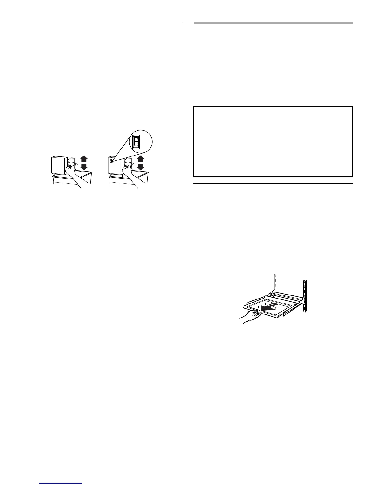 ■ To slide out shelf, carefully pull front of shelf toward you.