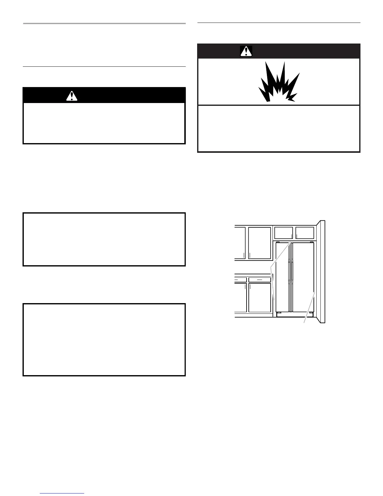 refrigerator next to a fixed wall, leave 2 in. (5.08 cm) minimum on