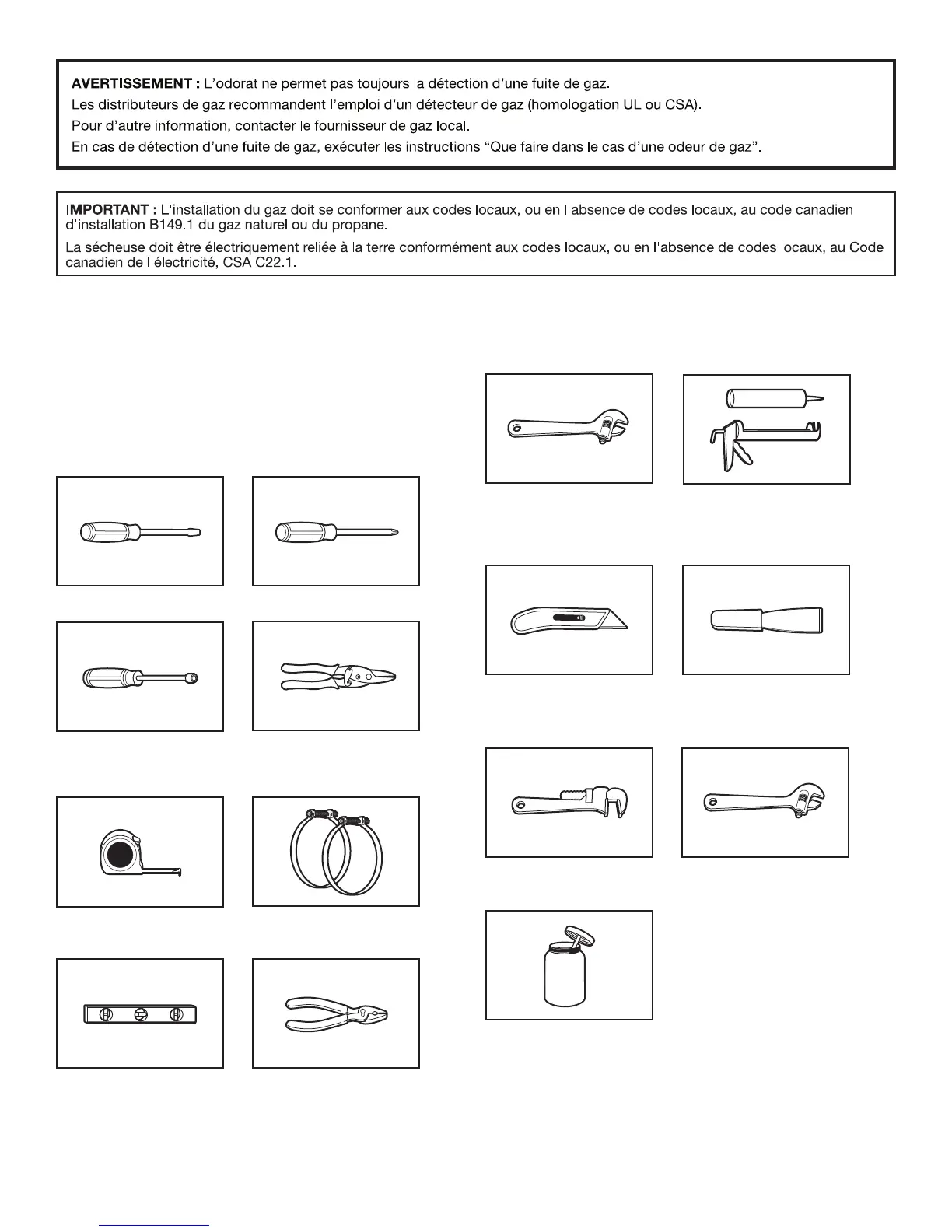 Outils nécessaires pour les installations au gaz :