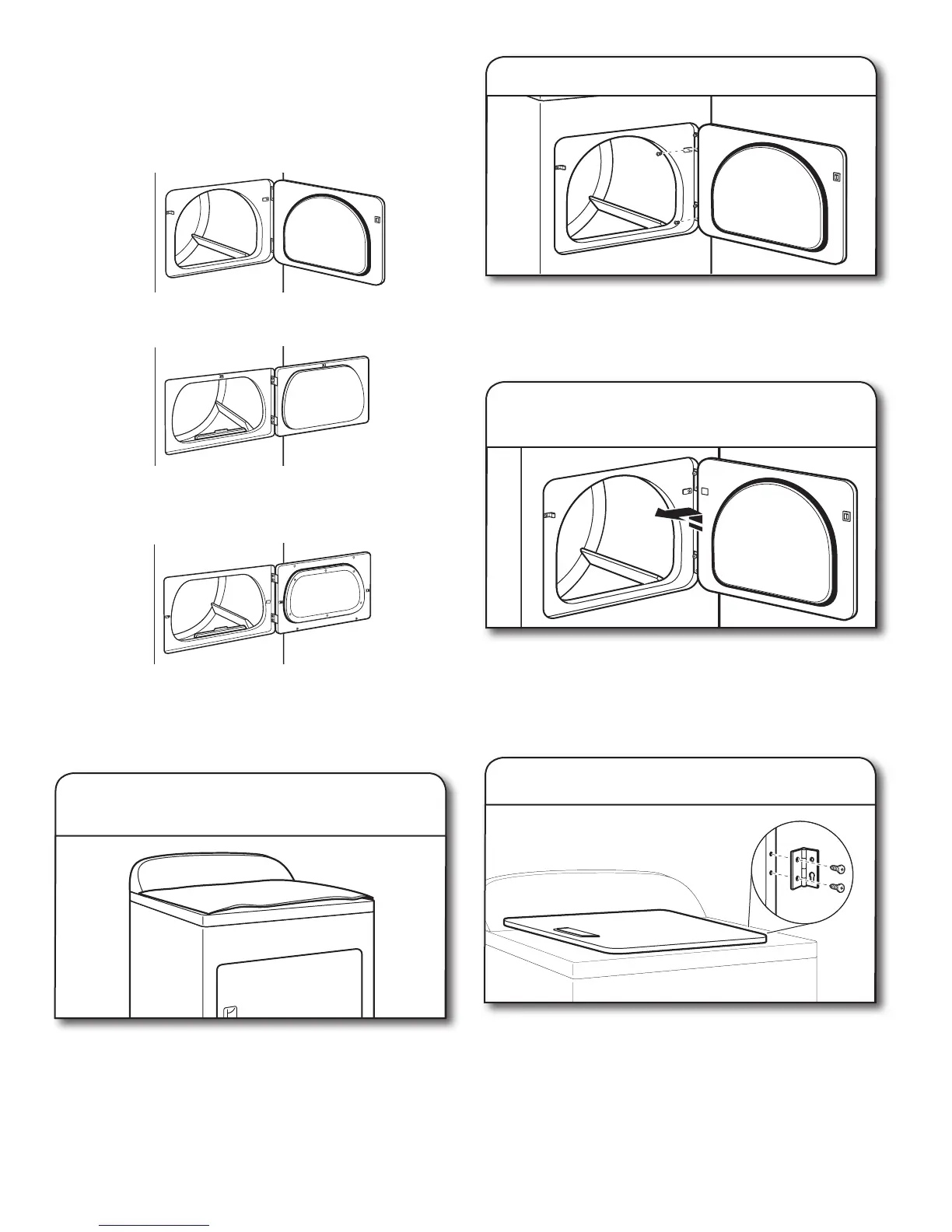 Ouvrir la porte de la sécheuse. Ôter les vis inférieures de la