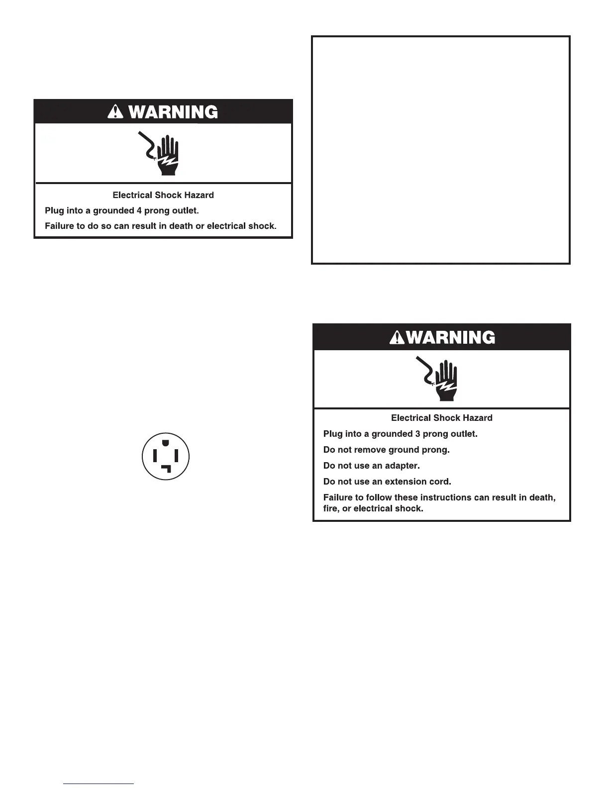 wall receptacle. The cord is 5 ft. (1.52 m) in length. Be sure
