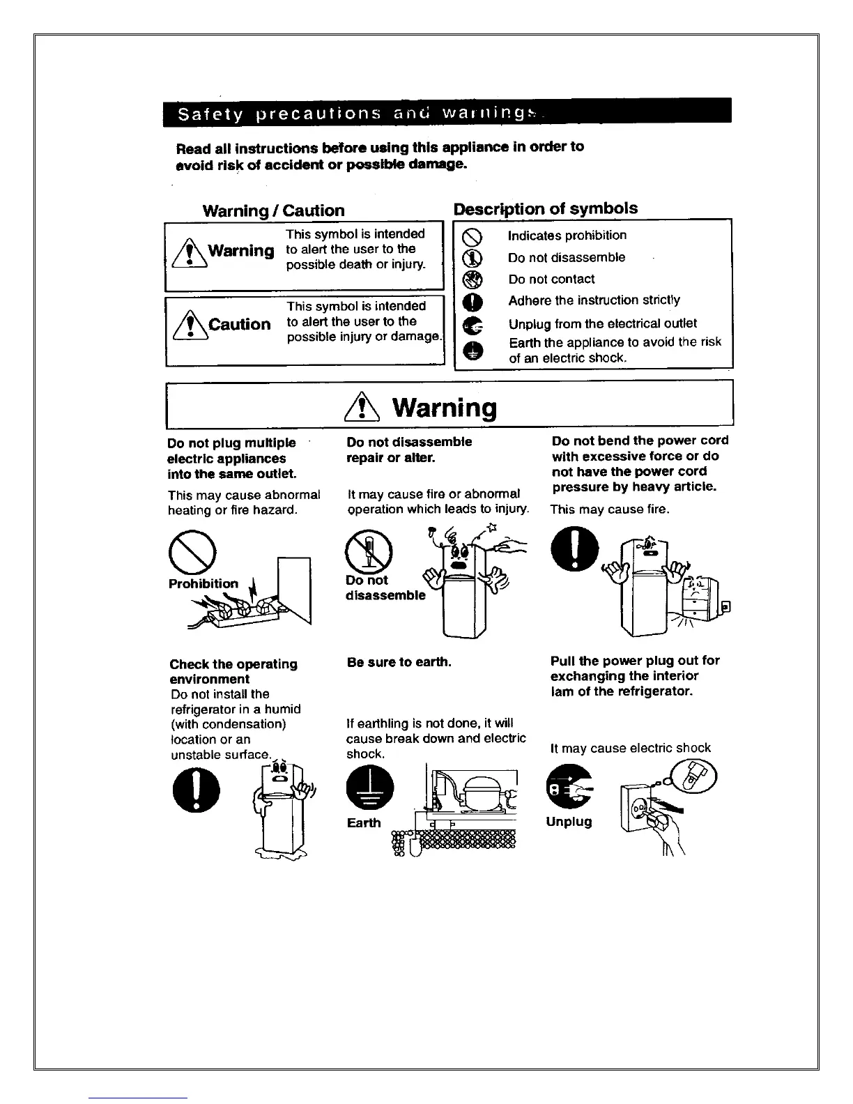 Whirlpool 290L - Safety Precautions and Warnings; Safety Symbol Definitions; General Safety Guidelines