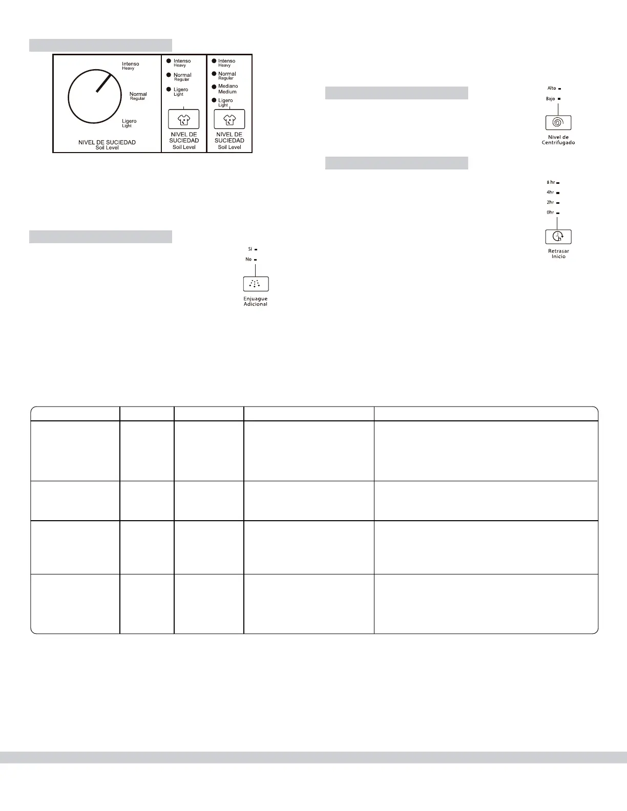 NOT ALL THE CYCLES AND OPTIONS ARE AVAILABLE IN ALL THE MODELS, VERIFY WHICH ONE APPLY TO YOUR