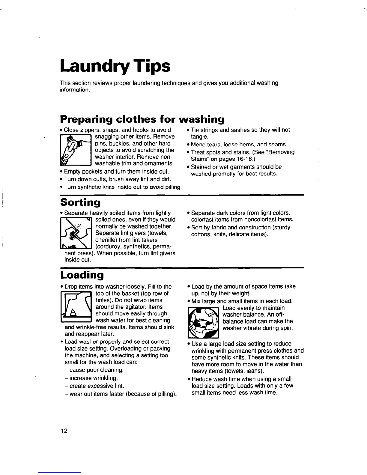 This section reviews proper laundering techniques and gives you additional washing