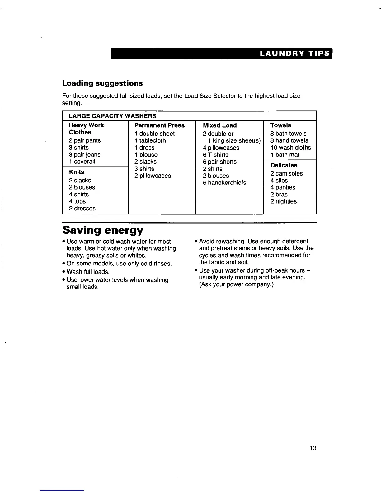 For these suggested full-sized loads, set the Load Size Selector to the highest load size