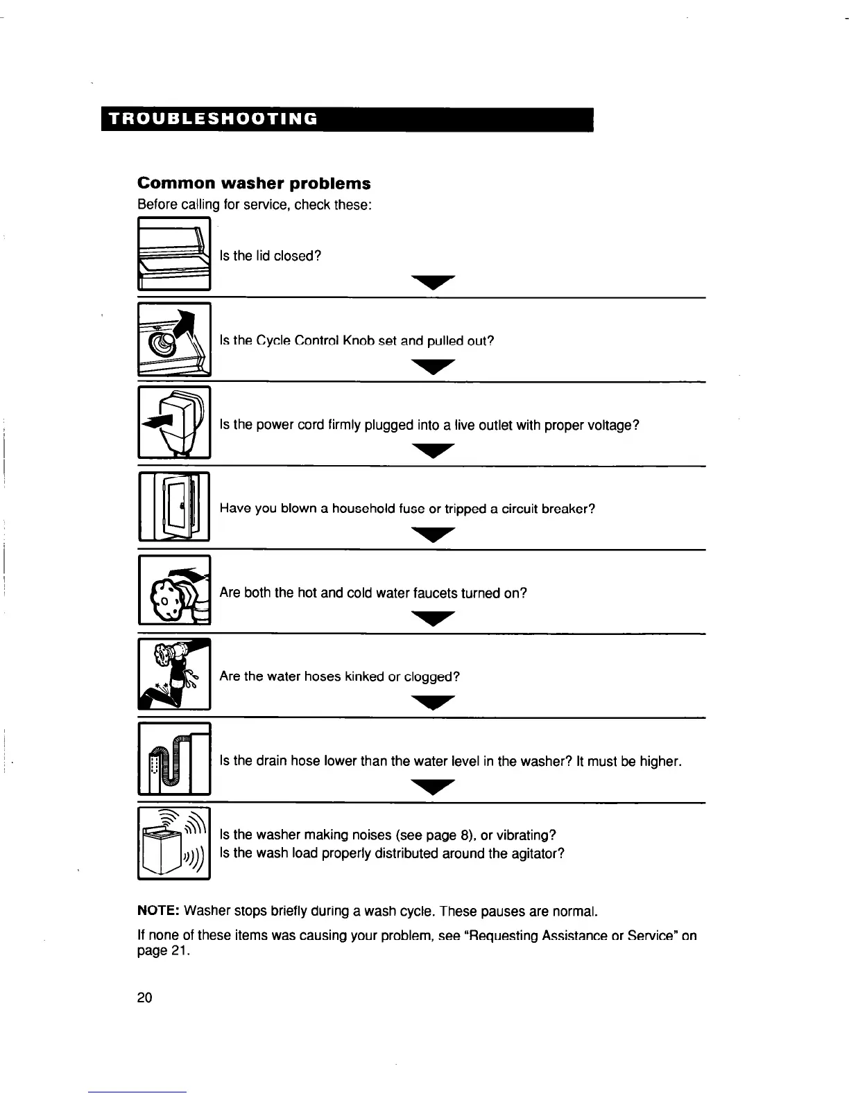 If none of these items was causing your problem, see “Requesting Assistance or Service” on