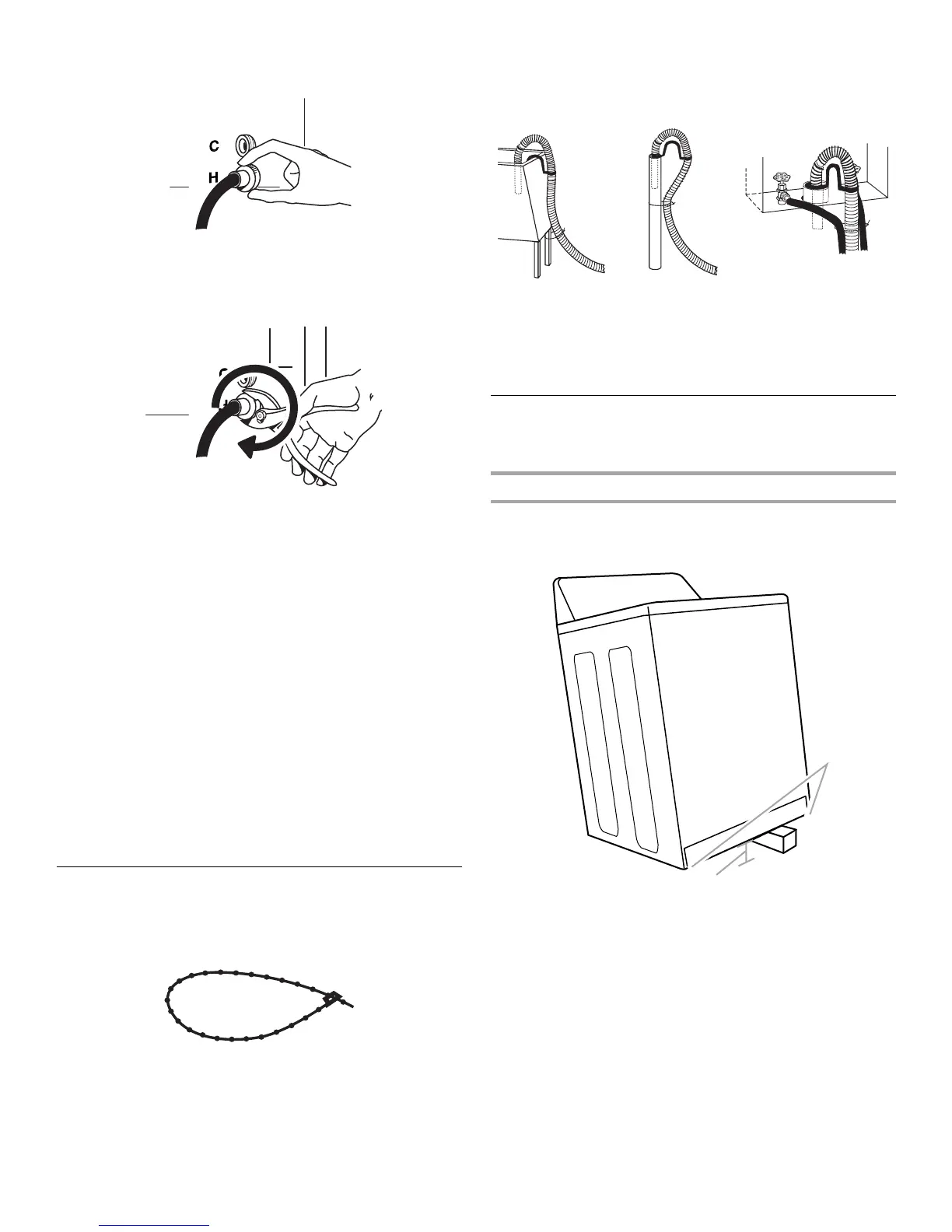 3. Enrolle la manguera de desagüe a la pata del lavadero o al