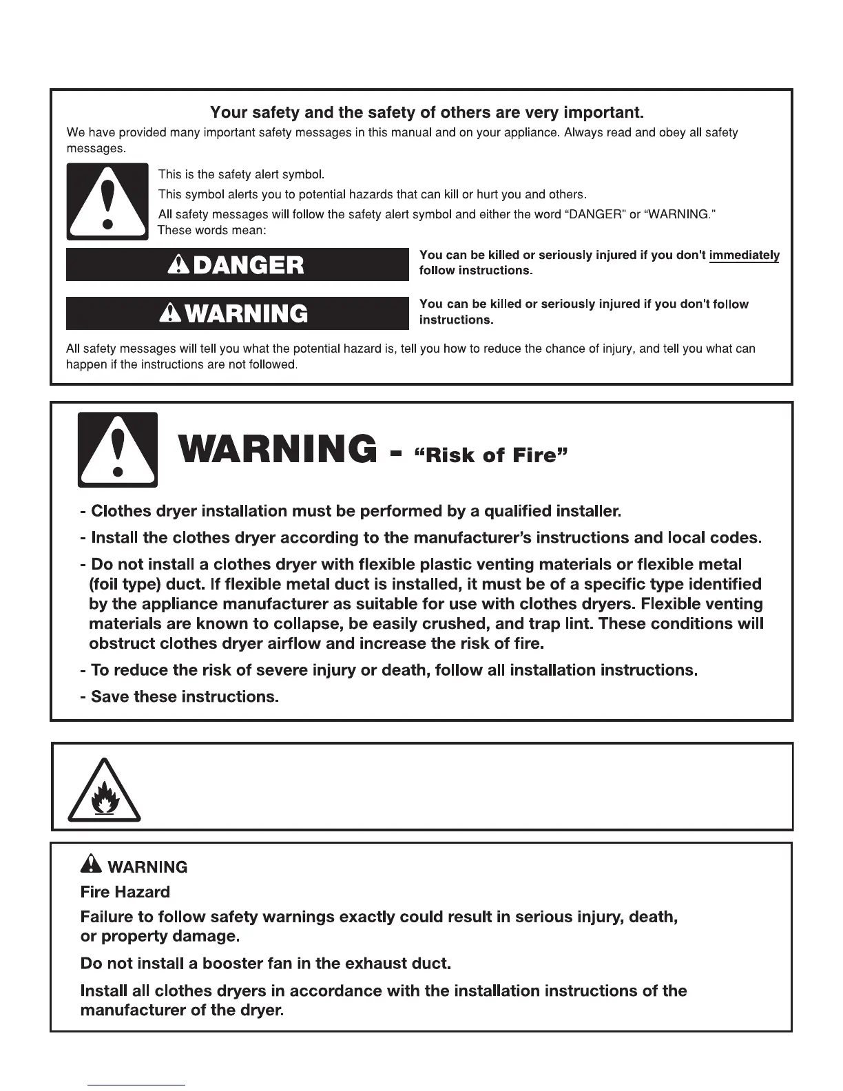 CAUTION – RISK OF FIRE/FLAMMABLE MATERIALS