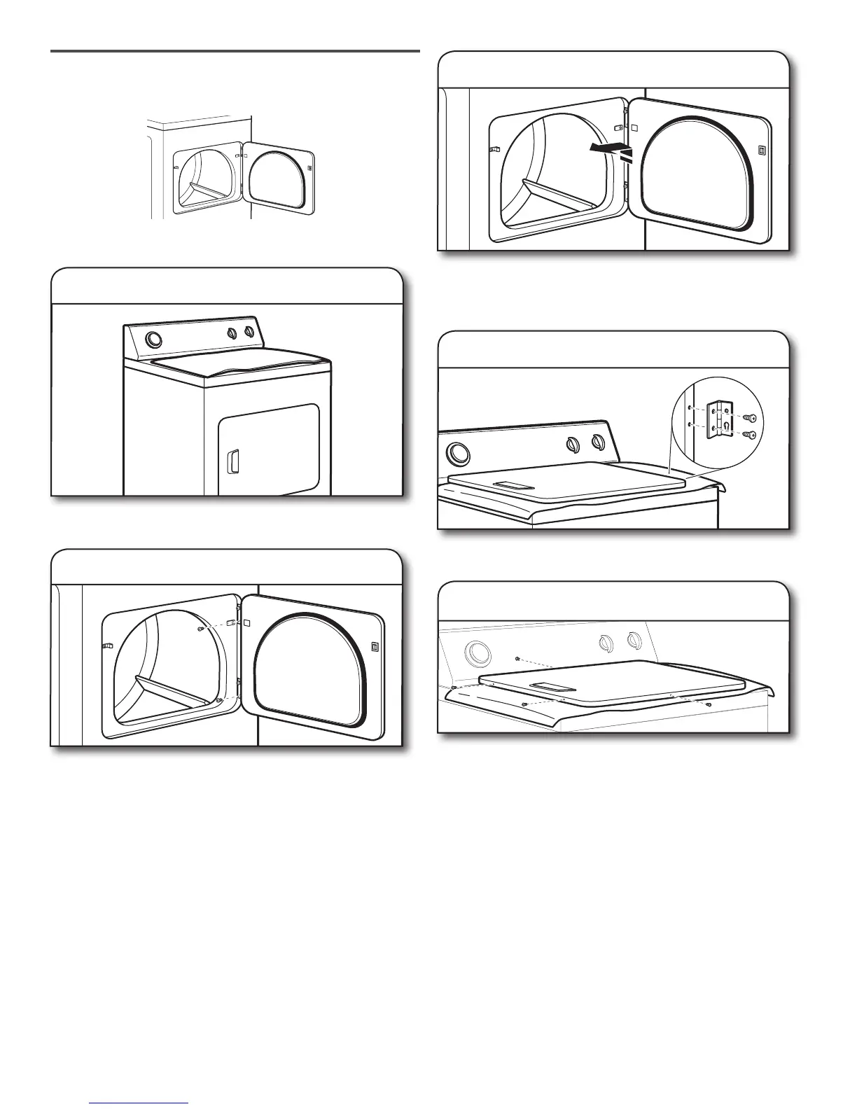 side of hinges. Loosen (do not remove) top screws from dryer