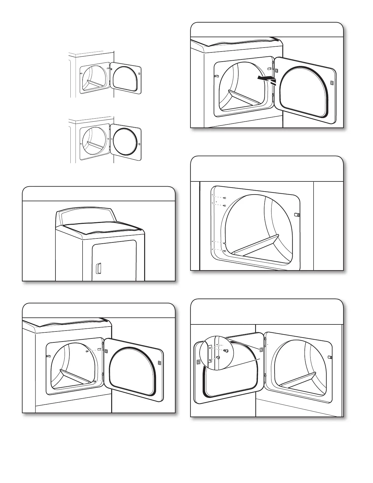 side of hinges. Loosen (do not remove) top screws from dryer