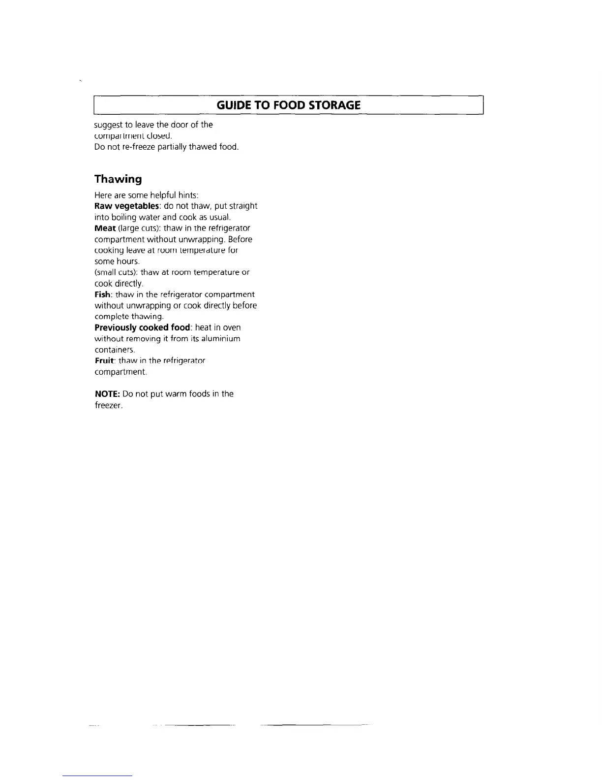 Do not re-freeze partially thawed food.